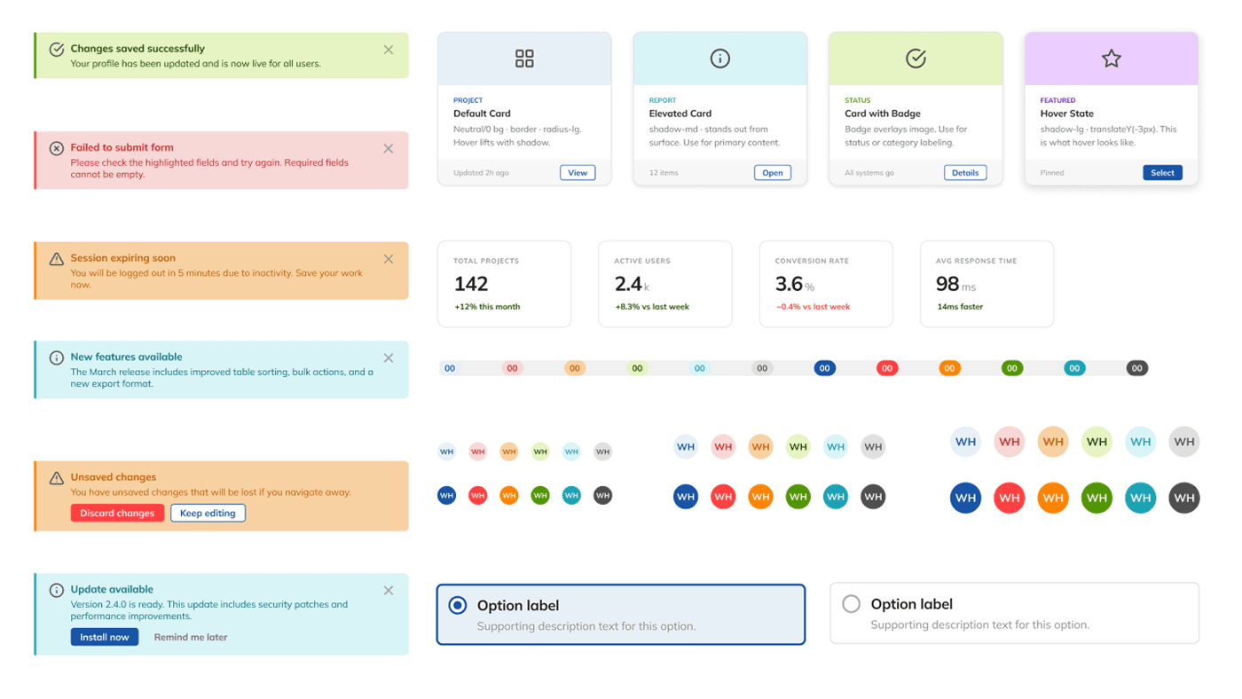 Alerts, Cards & Avatars