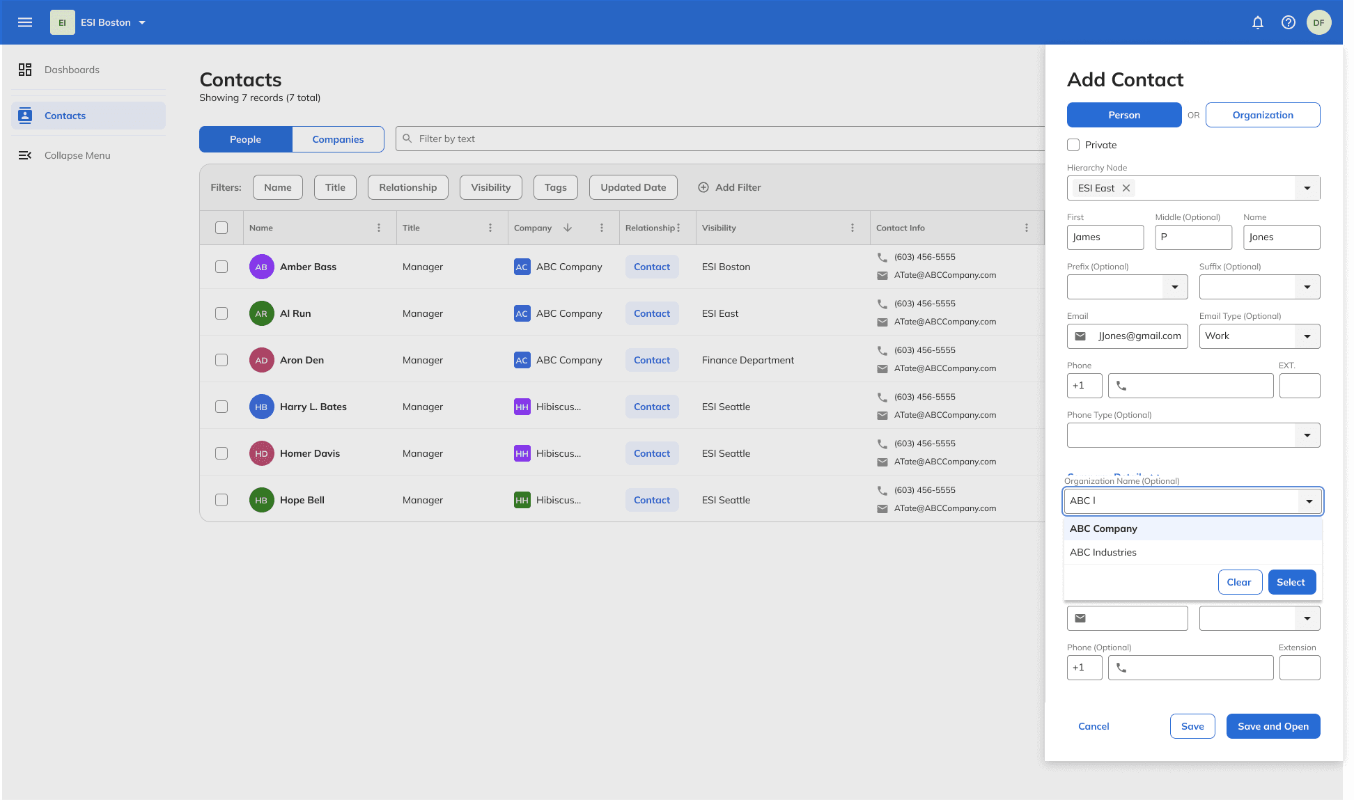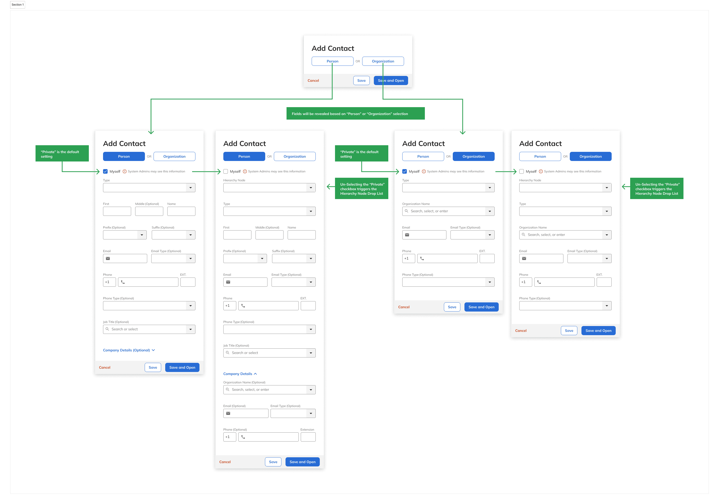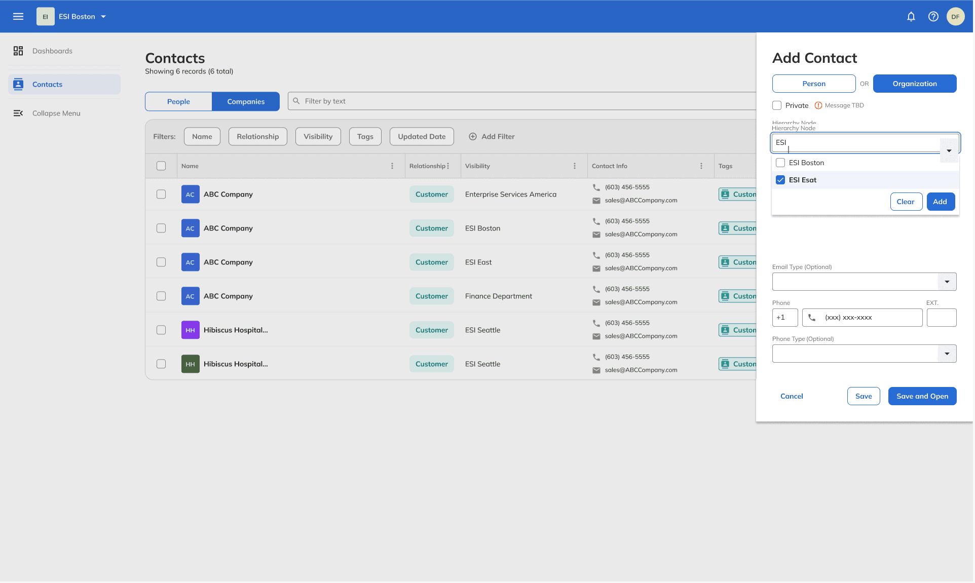 Contact type ambiguity eliminated — every person placed correctly in the org hierarchy at point of entry, with role and relationship explicit.