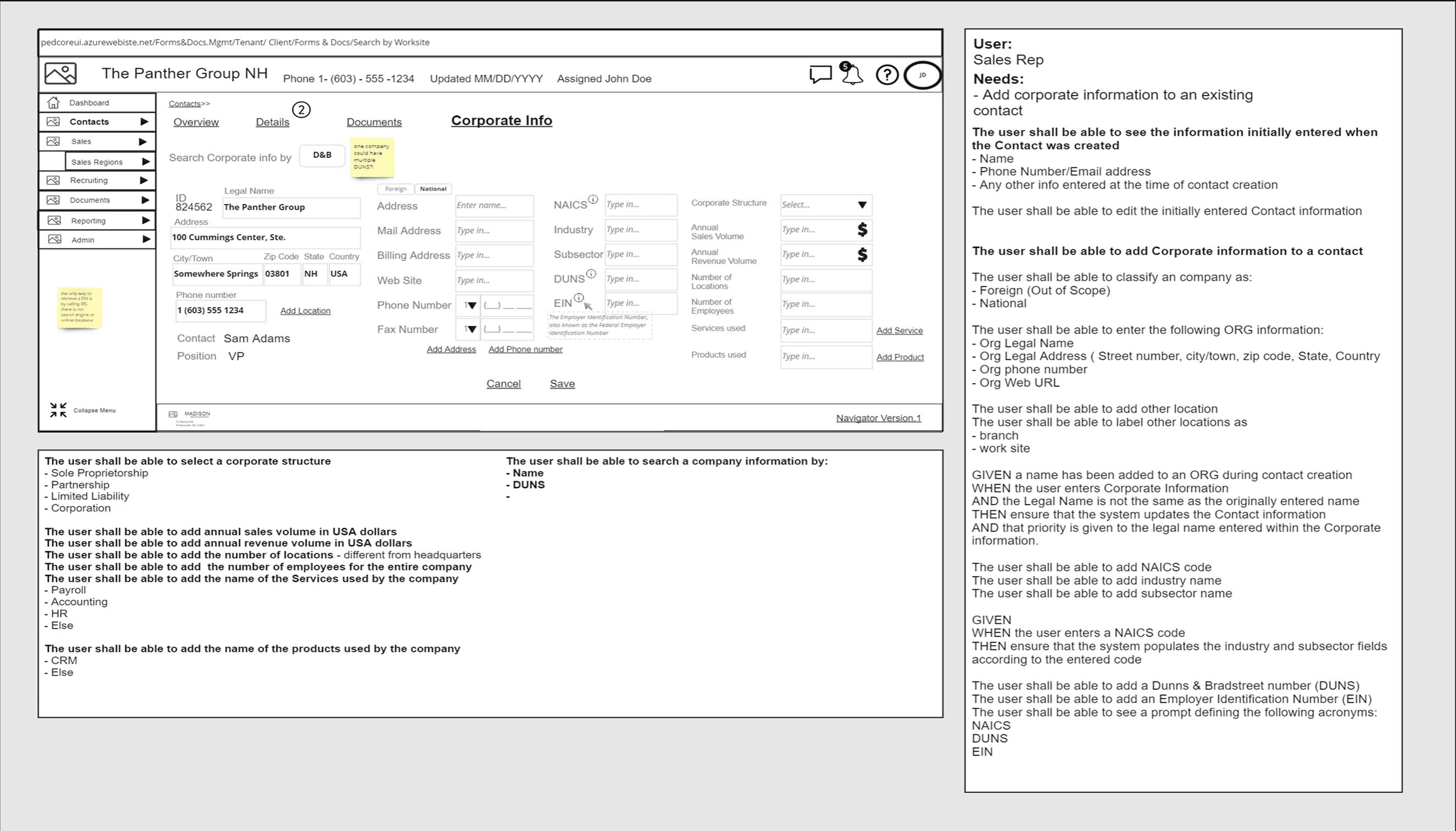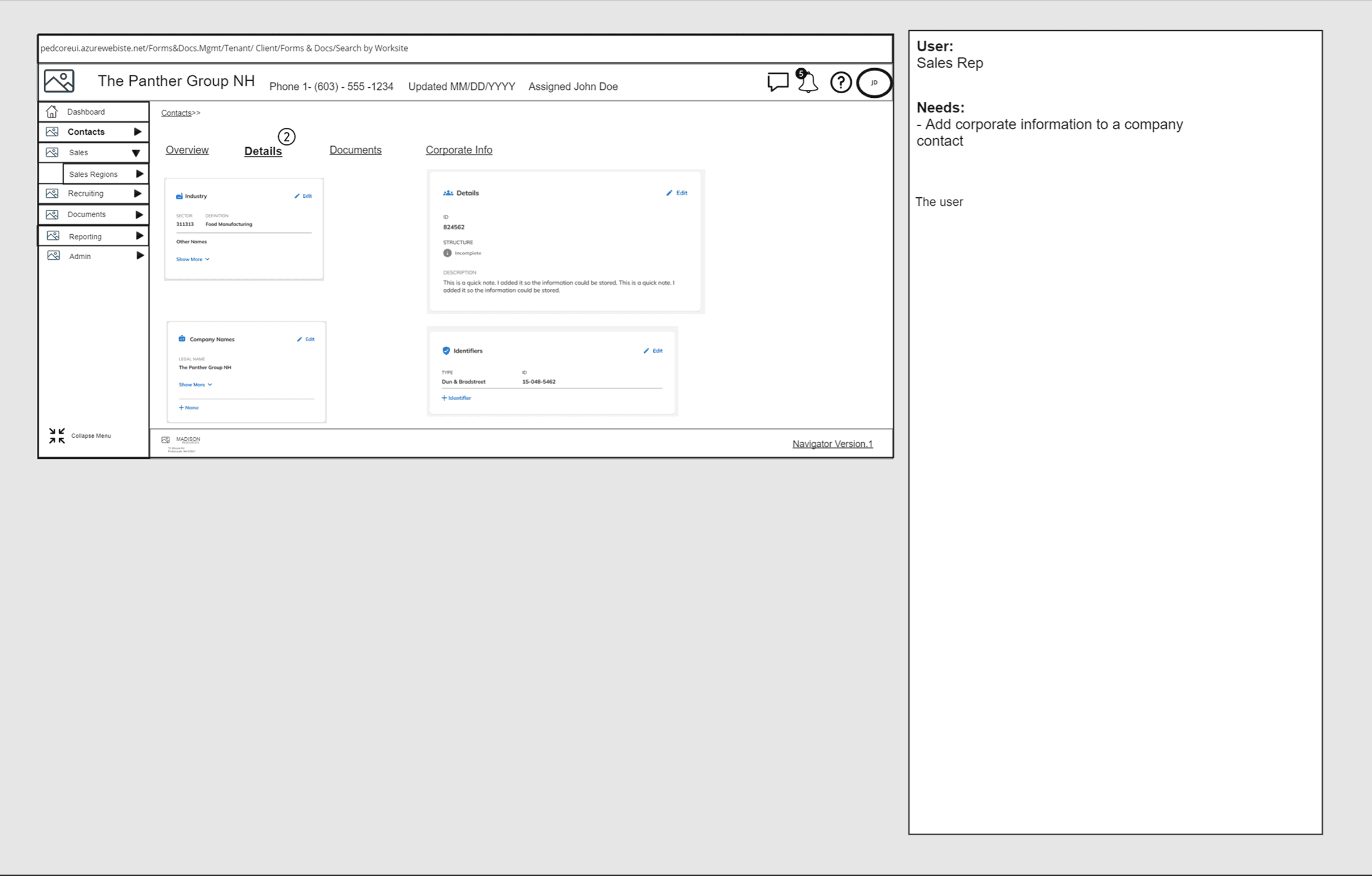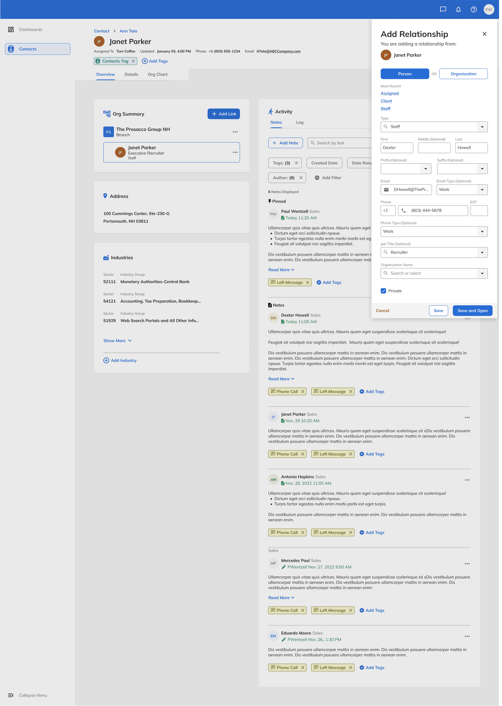 Led UX design for Navigator CRM — from contact relationship architecture through Blazor component specs and Gator DS implementation.