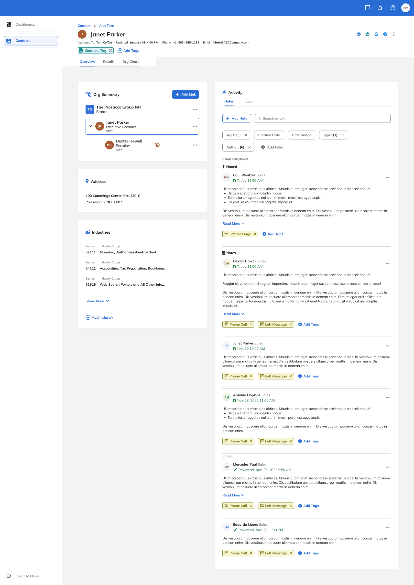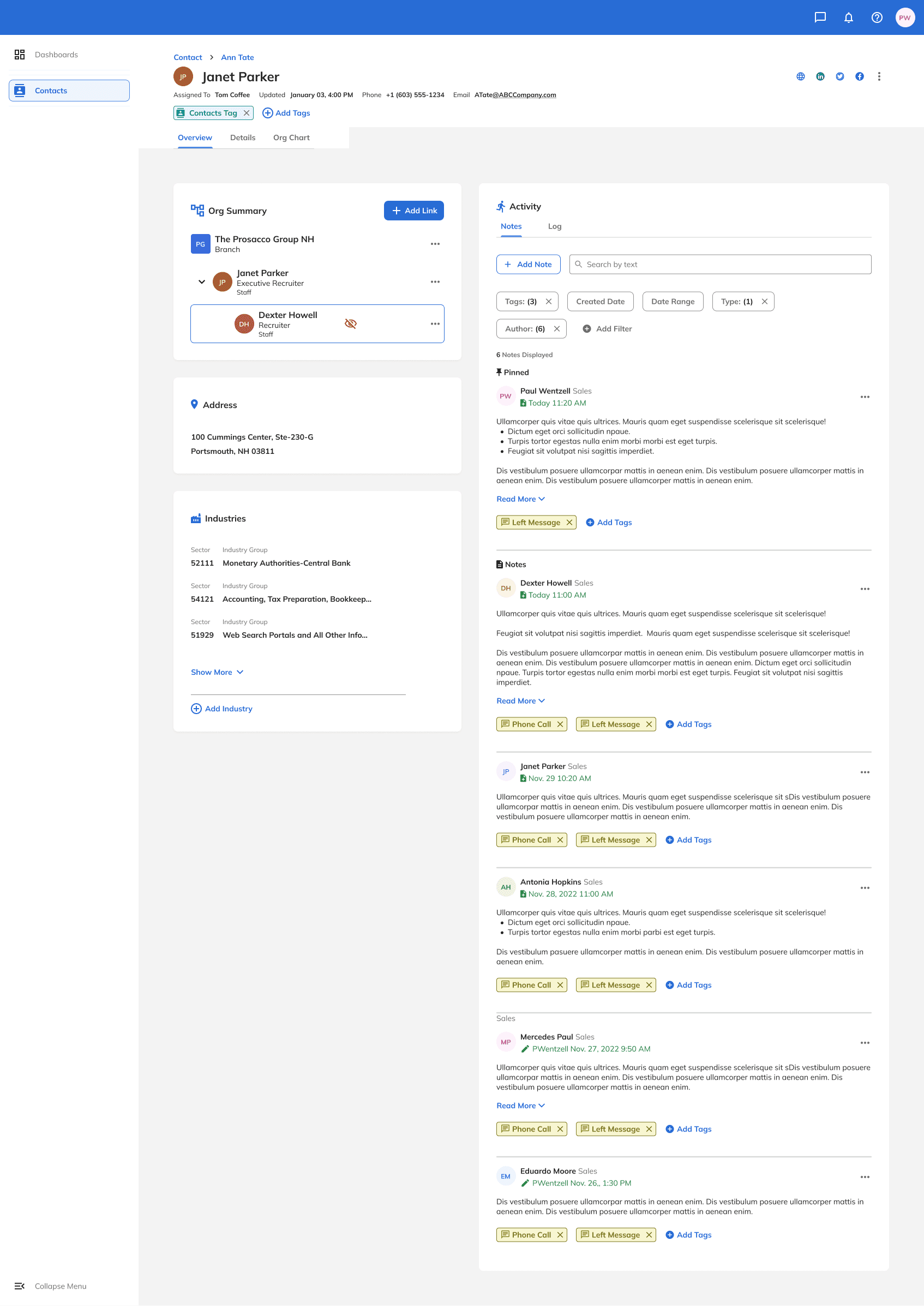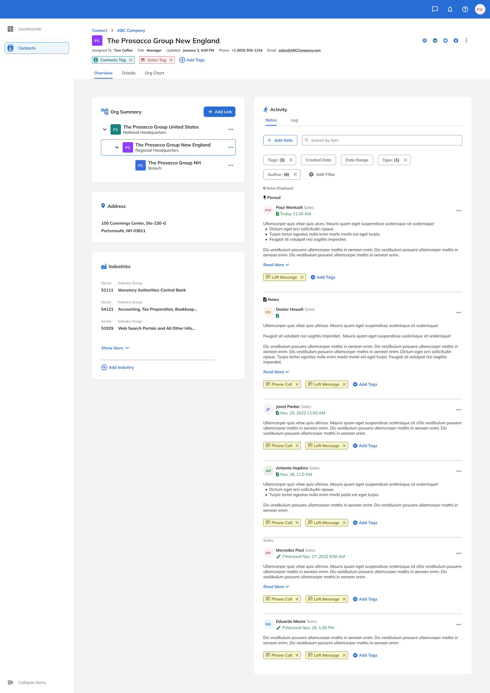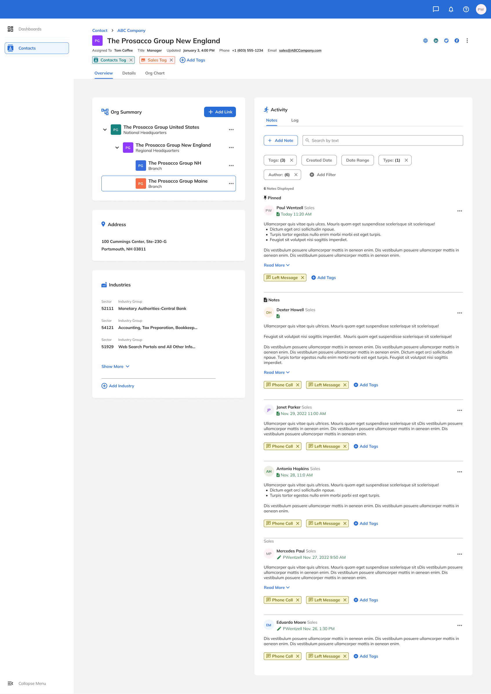 Madison's reps were managing contacts across disconnected views — no single place to understand a contact's full history.