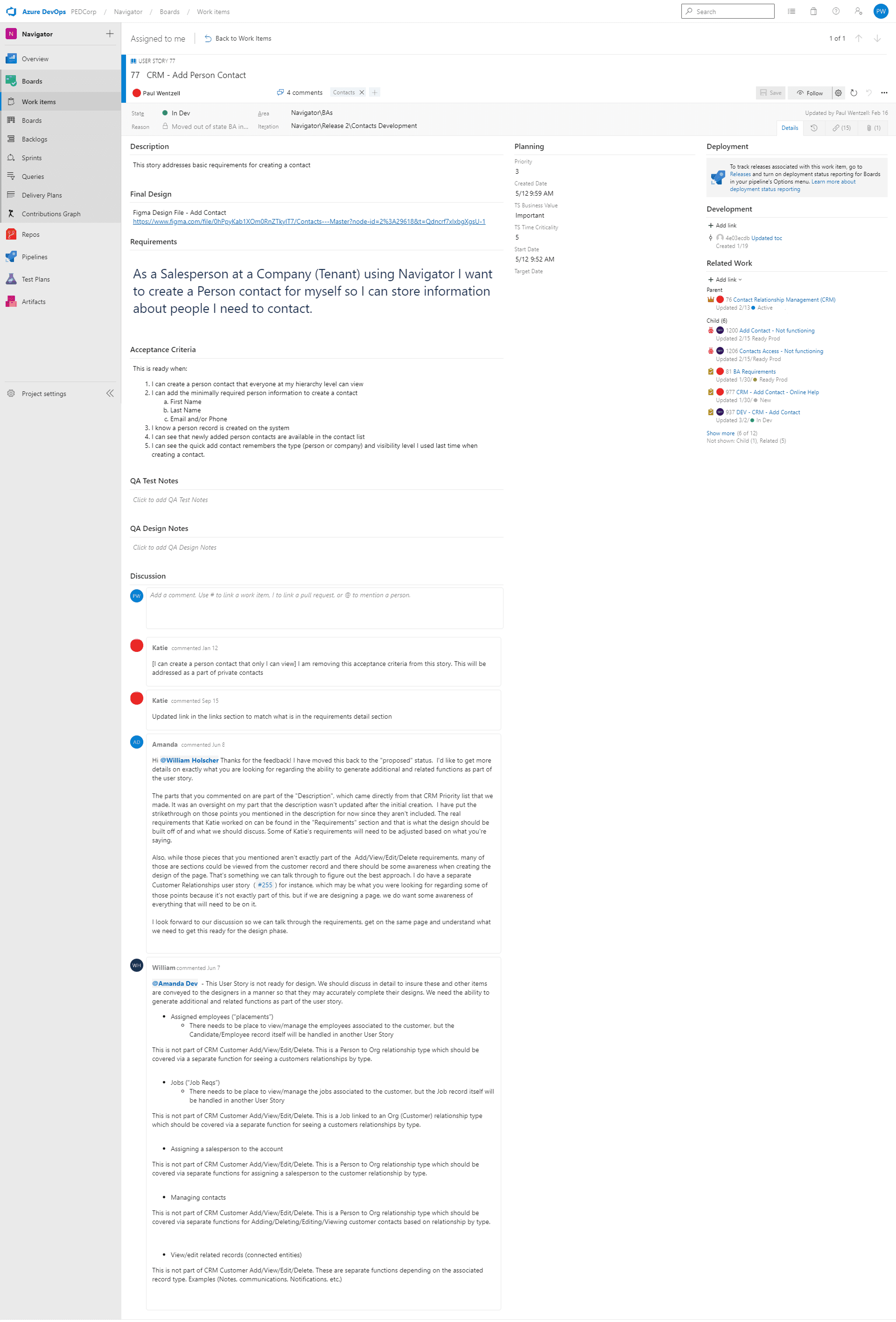 Every kickback was documented with a written reason in Azure DevOps — creating a clear record rather than a verbal loop.