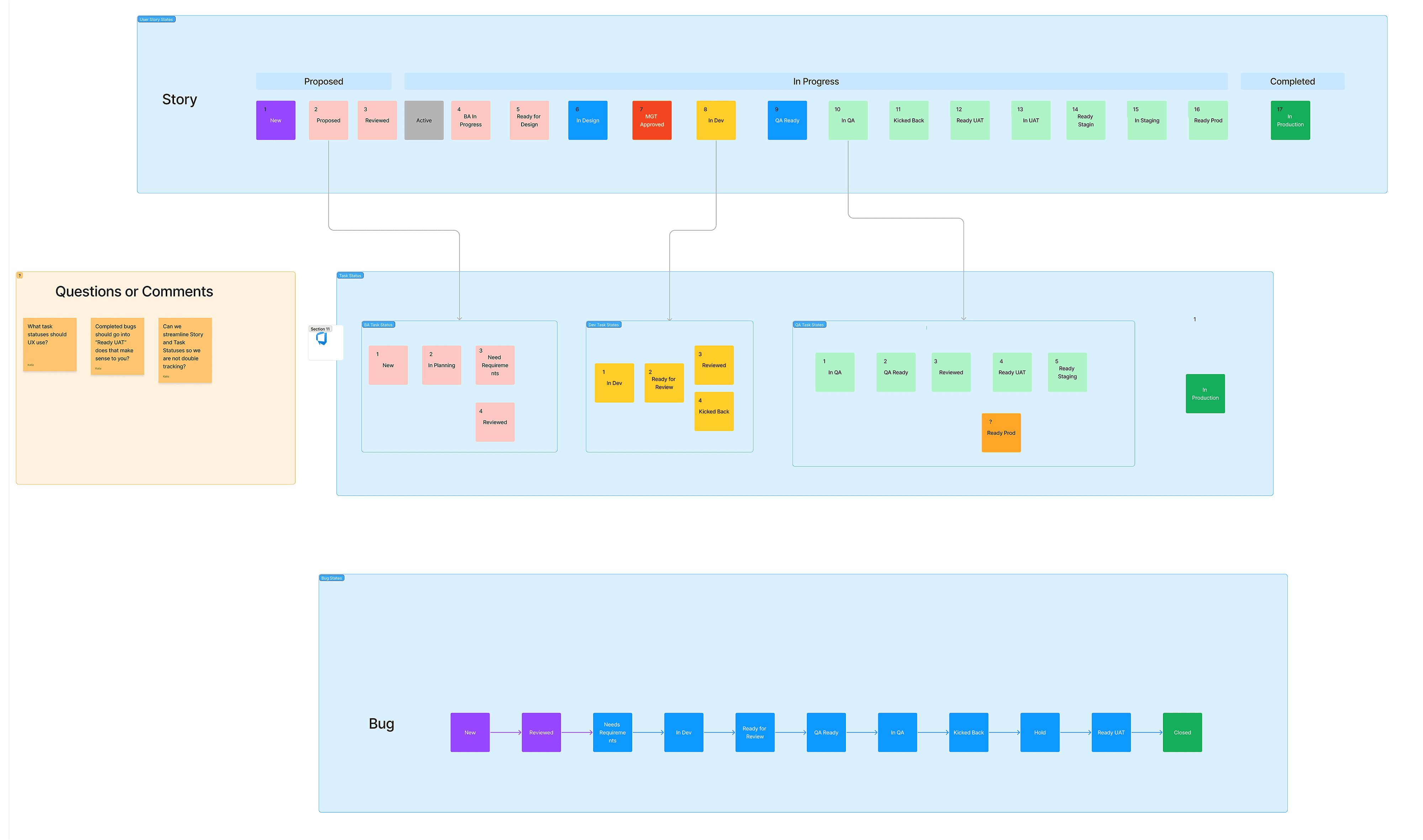 Workflow designed with project manager - Story, Tasks, Bug Workflows