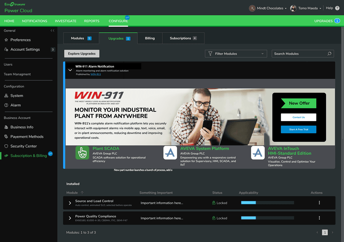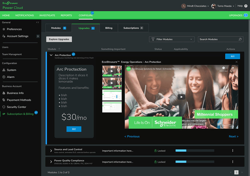 Schneider Electric’s EcoStruxure Building platform delivers IoT‑connected control across HVAC, lighting, energy, and building automation systems. As part of this ecosystem, technicians purchased and activated software modules that unlocked specific building‑management capabilities. The Subscription Management redesign modernized how these modules were purchased, assigned, and renewed — replacing fragmented workflows with a unified experience that aligned to real‑world technician tasks. By consolidating module activation, entitlement visibility, and device‑level mapping into a single interface, the new system reduced friction, improved accuracy, and supported the broader EcoStruxure Building strategy of scalable, subscription‑based functionality.